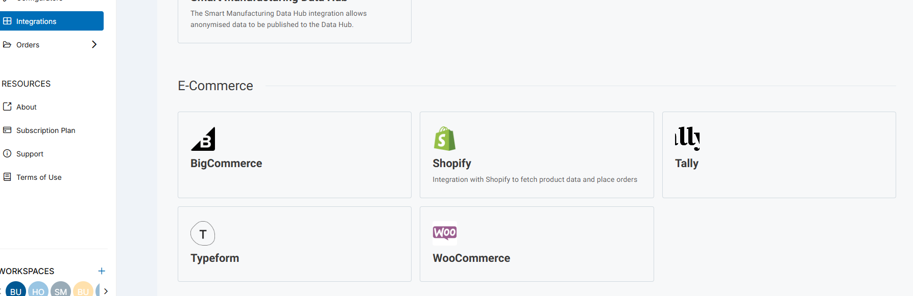 When you go to Integrations tab on your sidebar you see a list of integrations you can make.